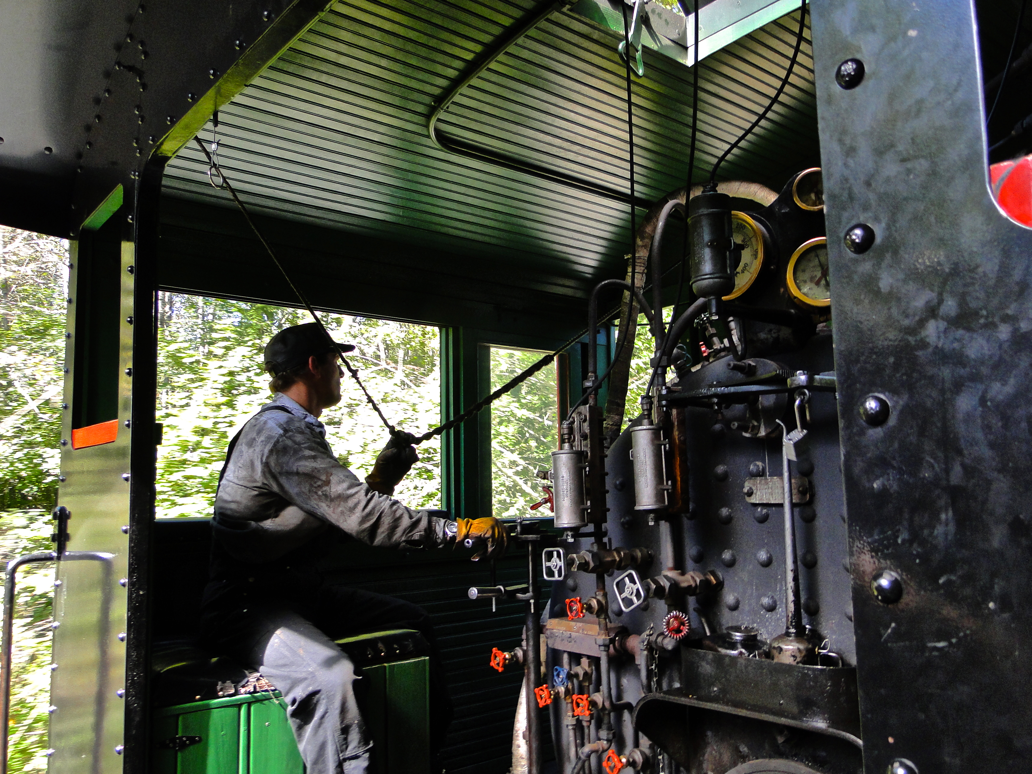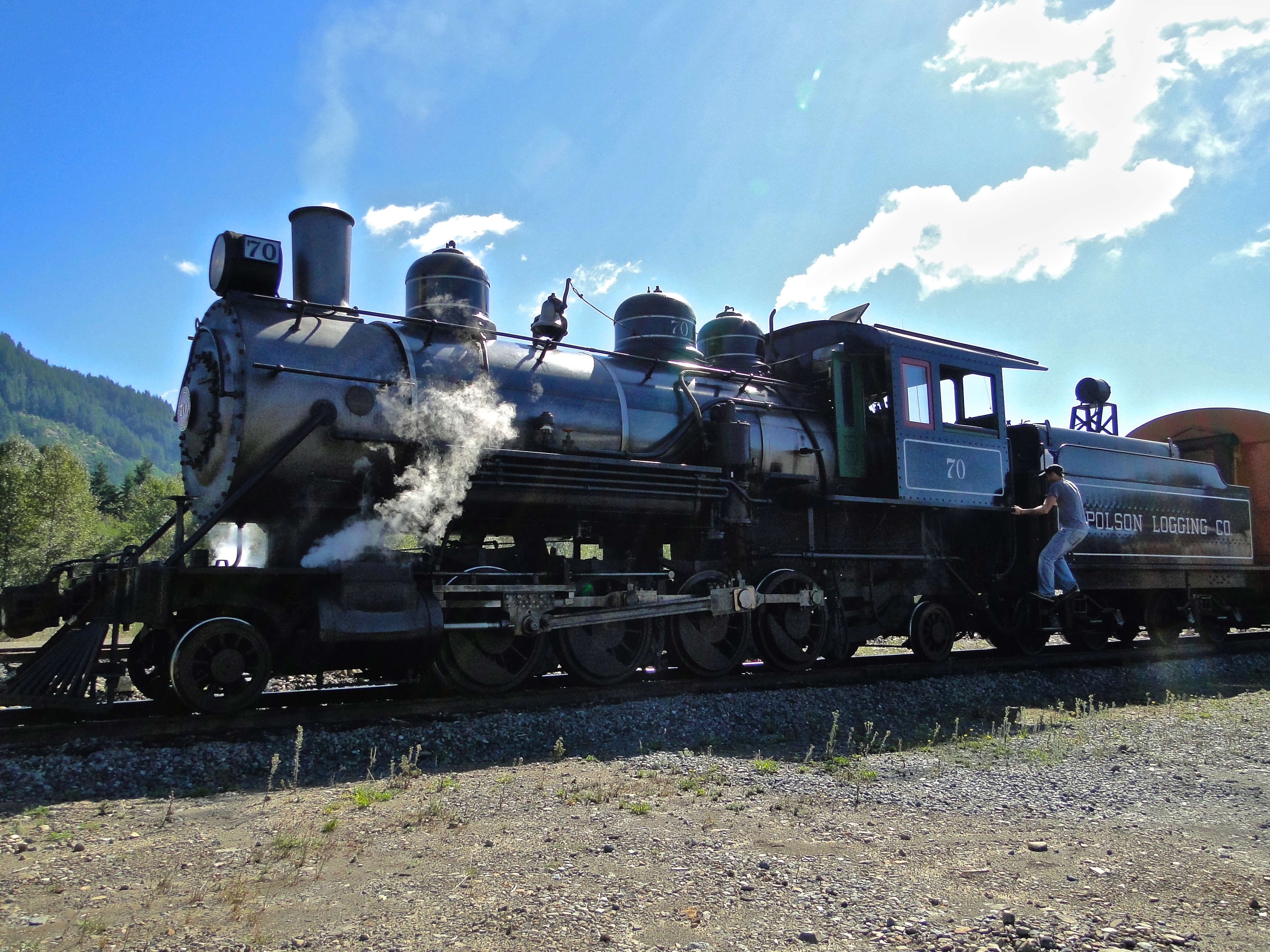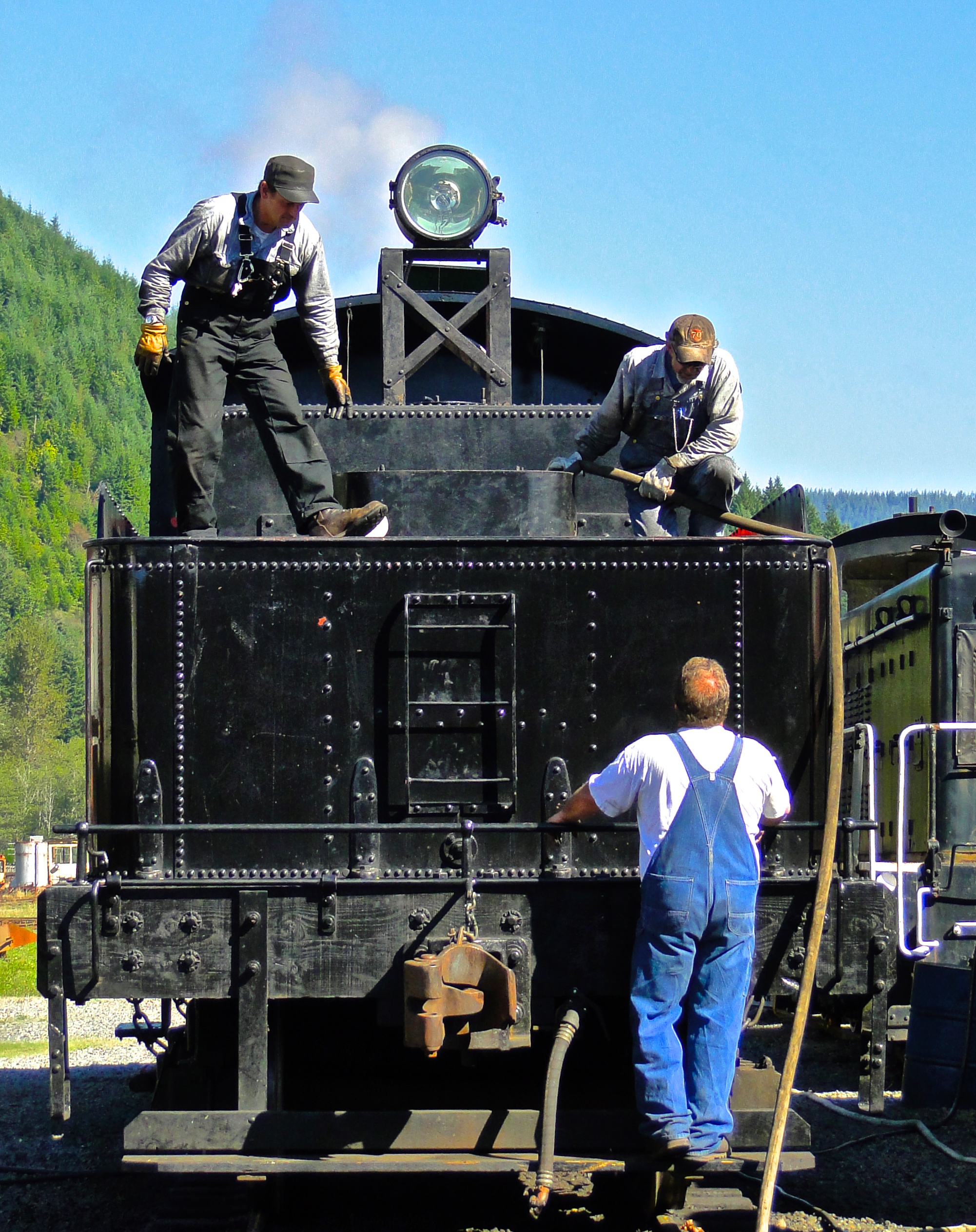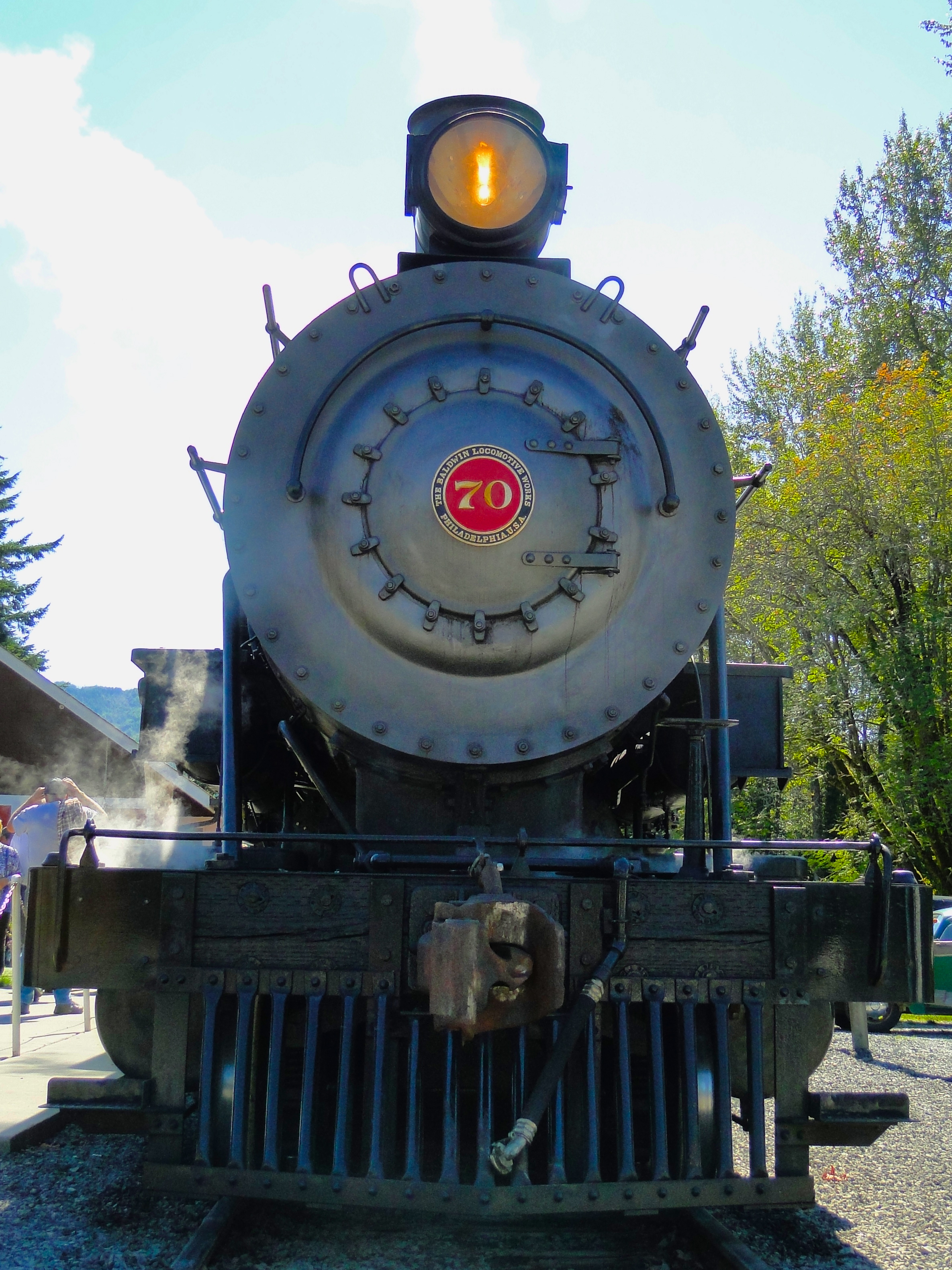 Once run on coal, the train now runs on used motor oil. The round-trip adventure from Elbe to Mineral and back takes 150 gallons of the recycled oil, and 1,500 gallons or more of water. A steam locomotive works by burning a combustible material (in this case used motor oil), producing steam in a boiler, which is then driven through an engine.