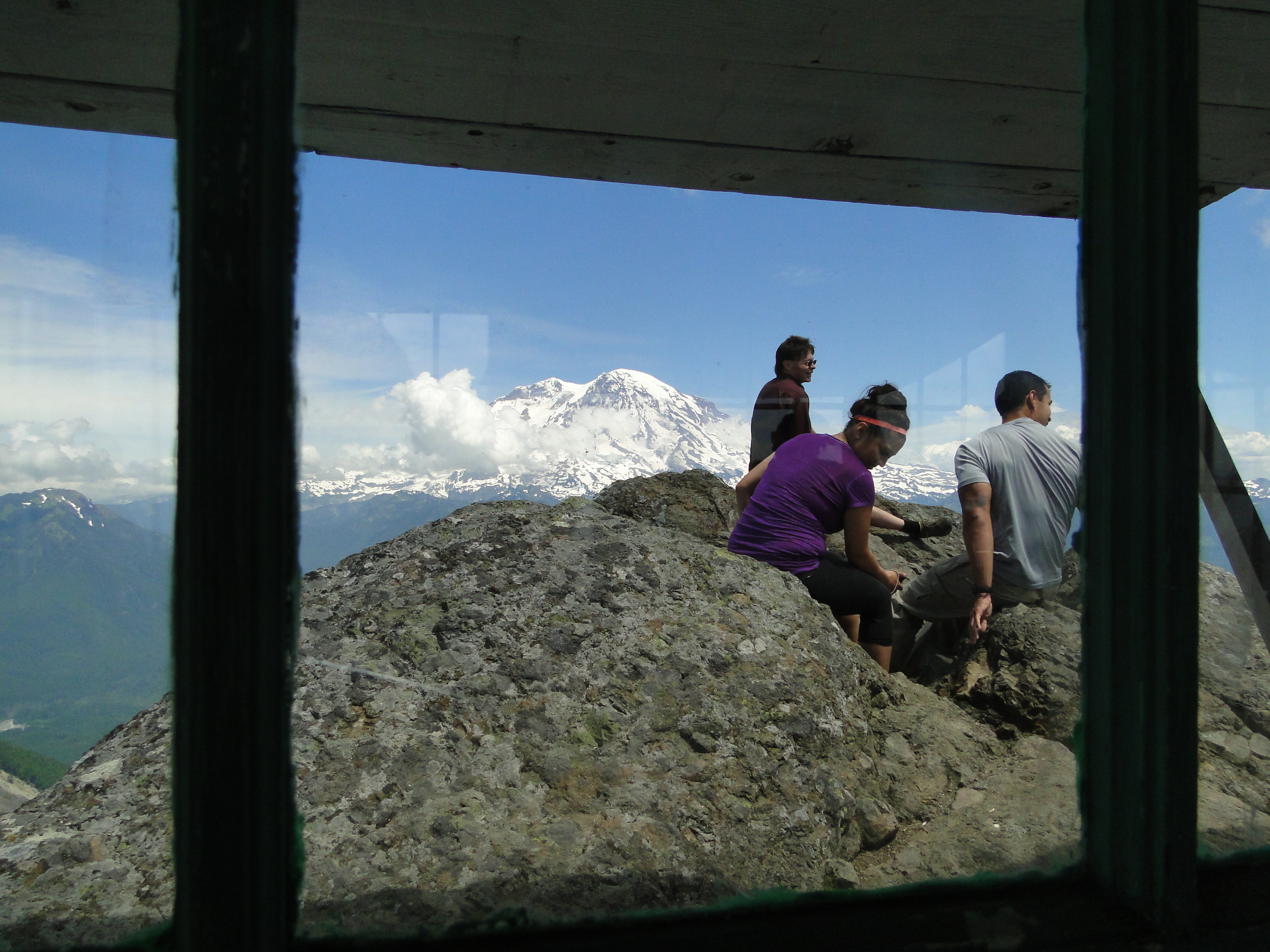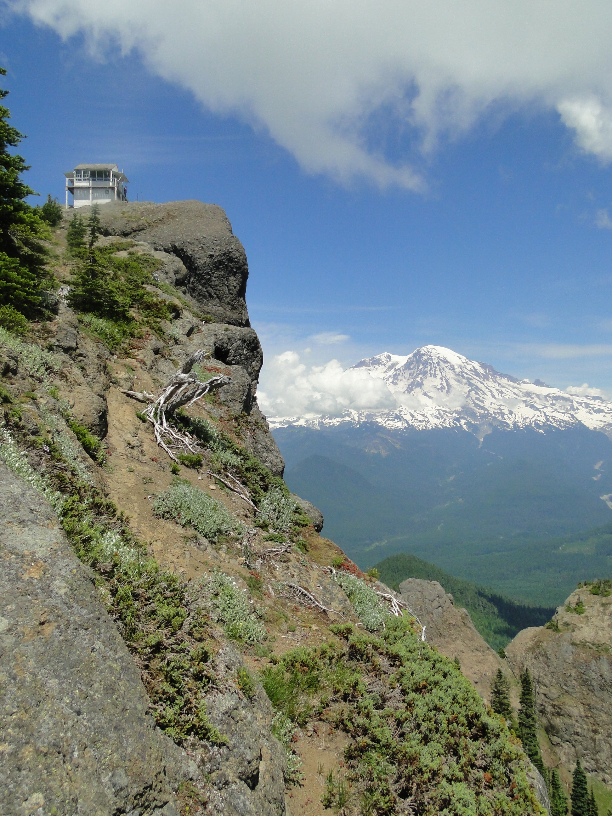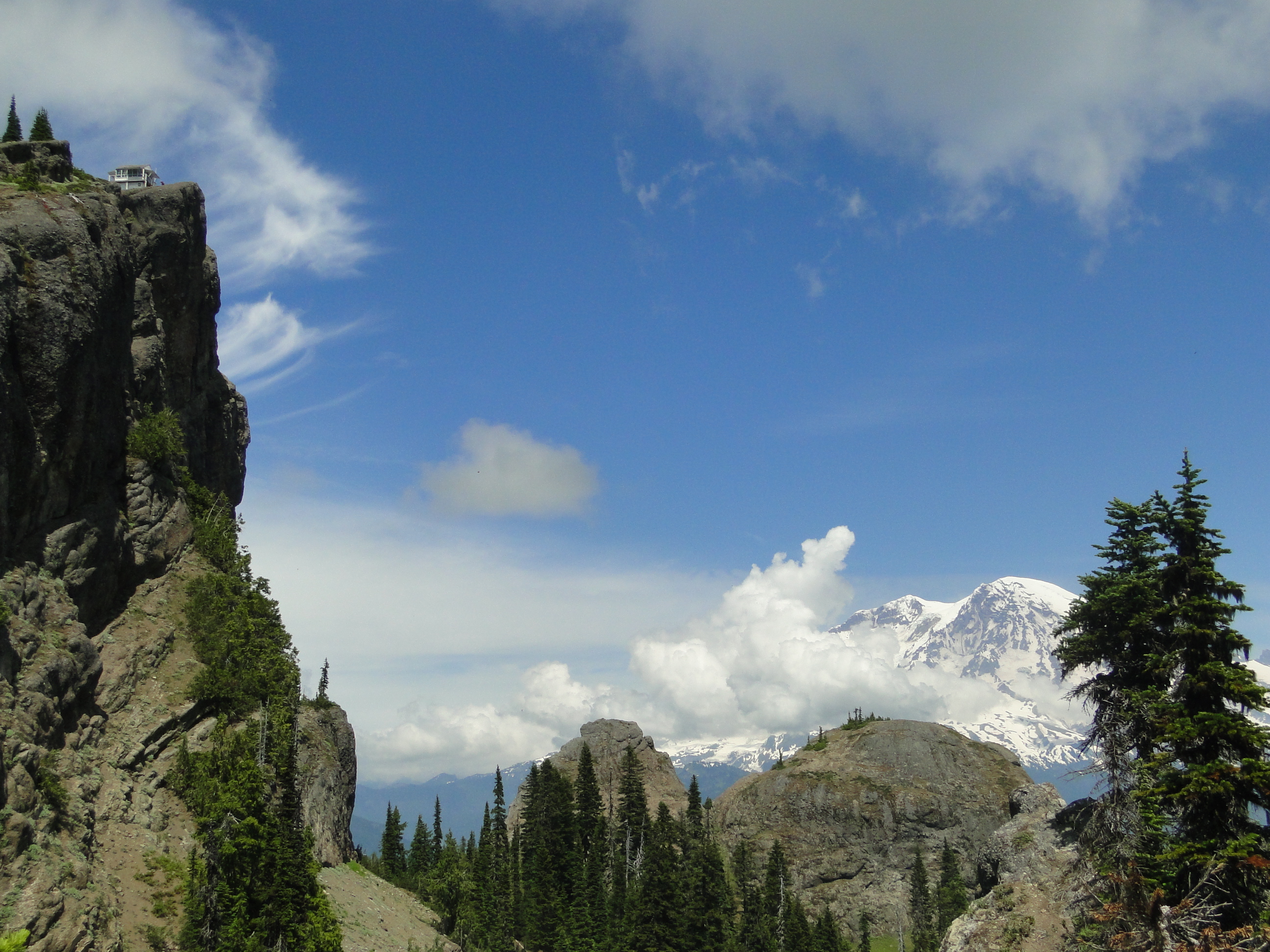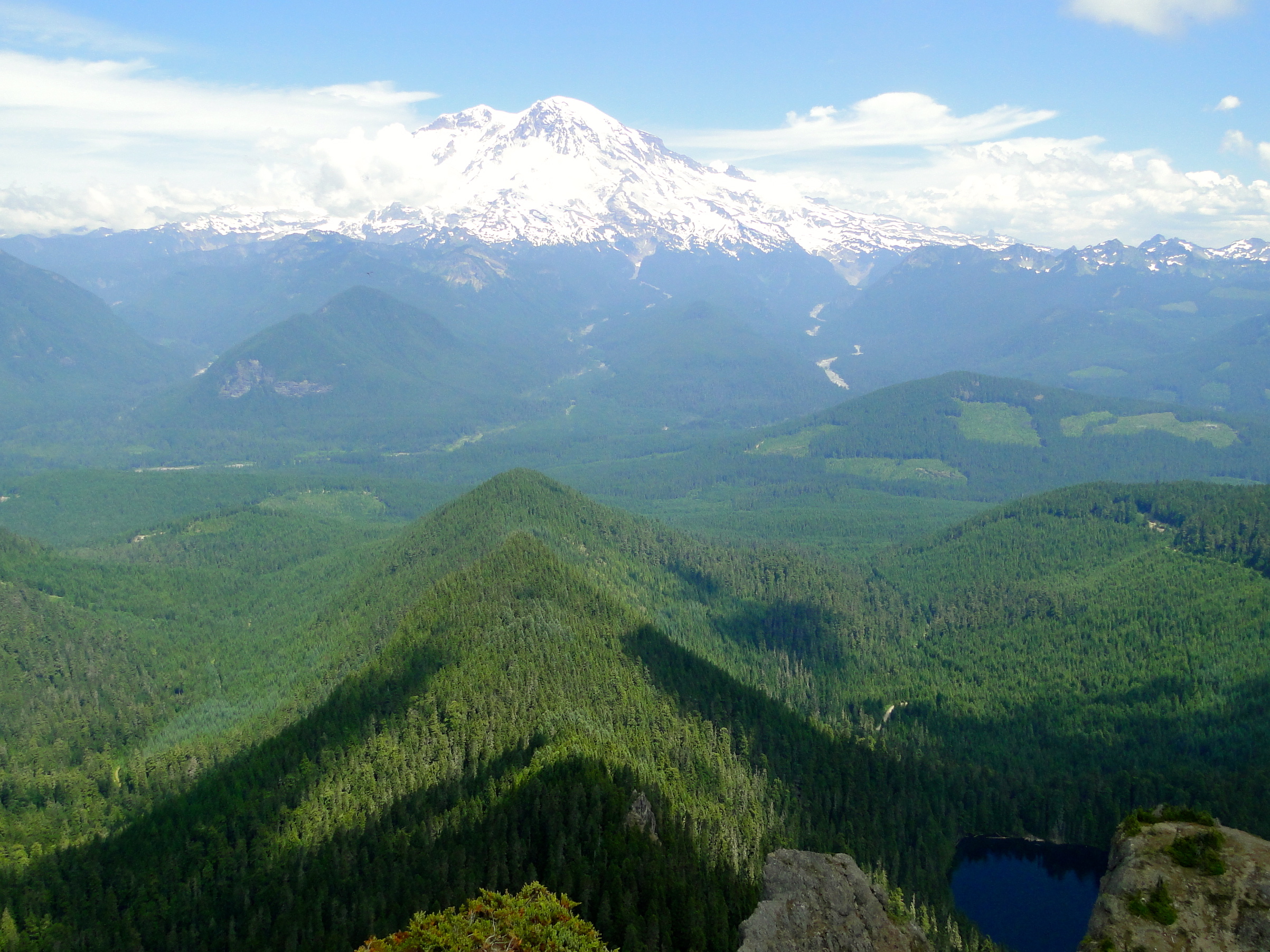 You’ll reach Reflection Lake 1.7 miles from the trailhead. After passing Reflection Lake and a pond alongside it (this .2 miles is alongside the Stevens Canyon Road before you dip back into nature), you’ll curve around to the left and have the option of following the Wonderland Trail towards Paradise River Camp, or continuing on the Lakes Trail. I opted to continue on the Wonderland Trail for a few hundred feet, and was rewarded with a beautiful view of Louise Lake. After snapping a photo, return to the Lakes Trail and head upwards for a half mile, before arriving at Faraway Rock for an excellent view of the Tatoosh Peaks and Louise Lake.